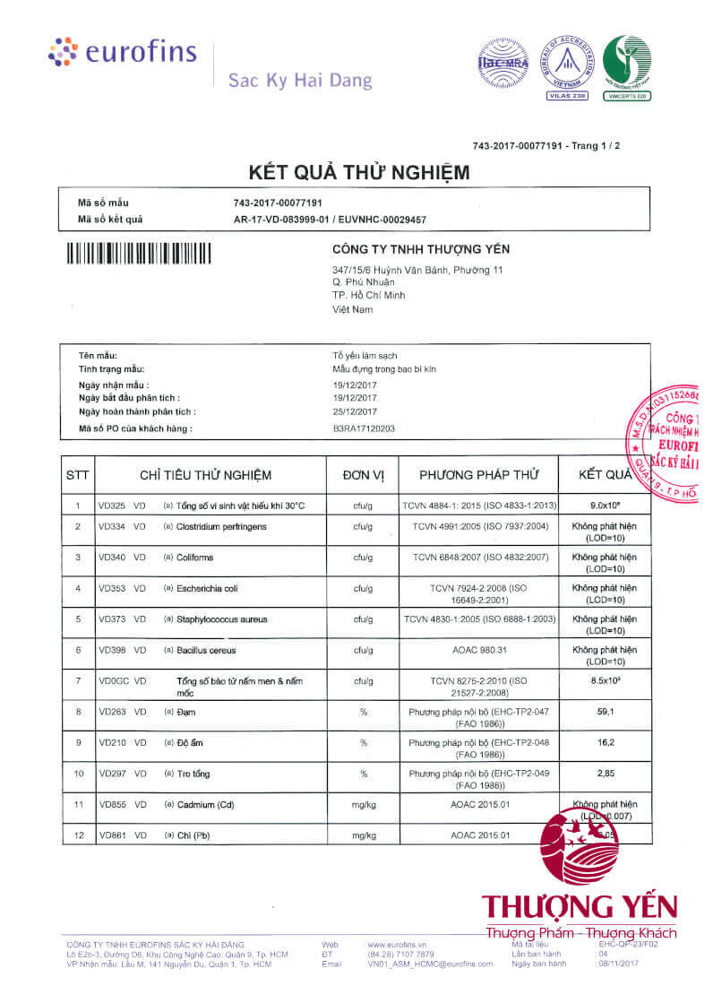 - Tất cả sản phẩm yến sào chưa qua chế biến của Thượng Yến đều đạt chứng nhận chất lượng kiểm định và VSATTP có tem mác đảm bảo với thời gian bảo quản 3 năm, tuy nhiên nhằm hạn chế rủi ro do quá trình bảo quản của quý khách, chúng tôi khuyến cáo không nên để quá lâu.